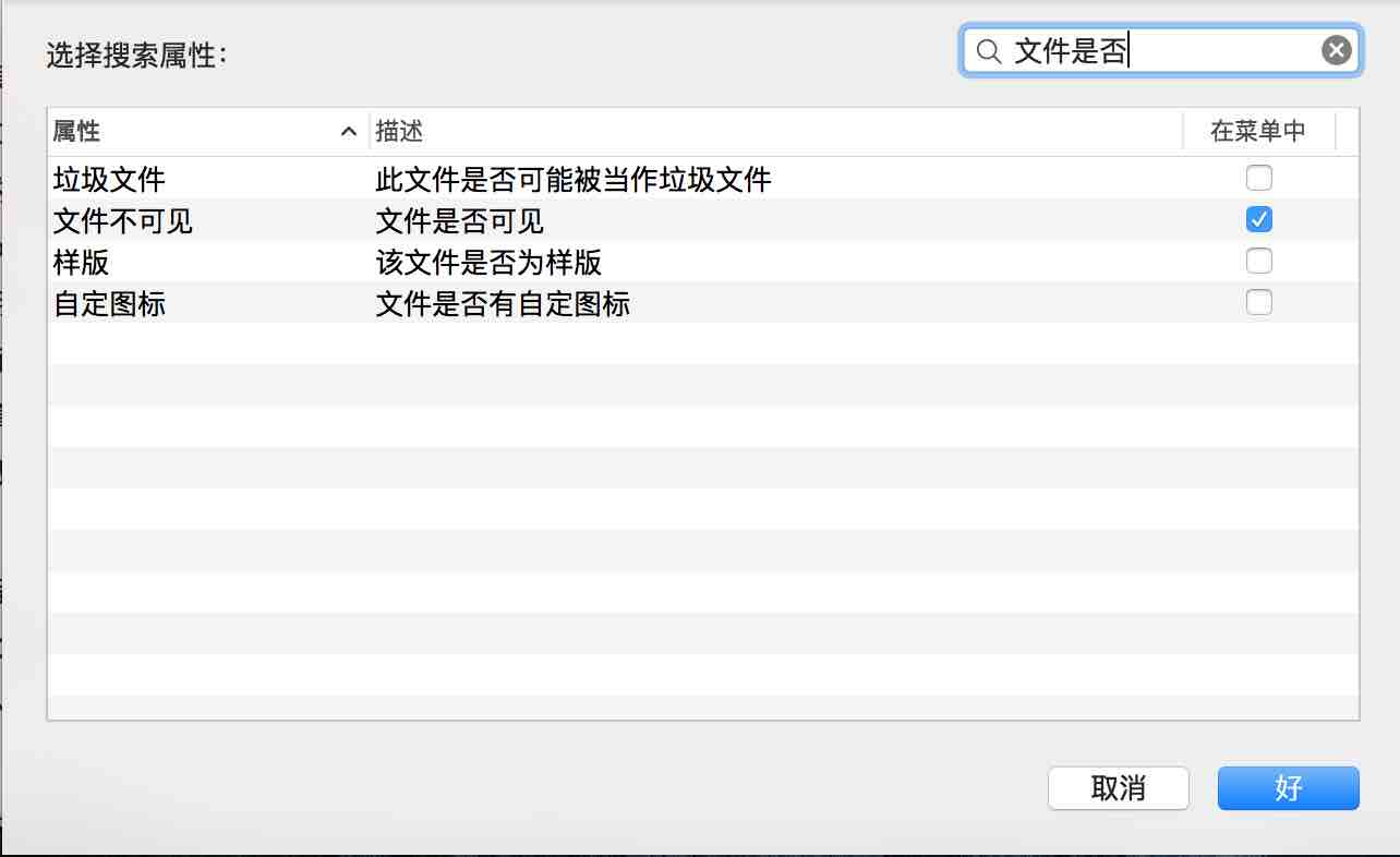 macOS 如何显示隐藏文件 2016-07-18 | mac | 瞎折腾 文章目录 第一种方法 命令行第二种方法 Finder 中设置 mac 为了系统安全会将一些文件夹隐藏,避免用户误删除造成的系统崩溃,但是在安装配置文件时经常需要到隐藏目录下操作,所以这里介绍两种方法,将隐藏的文件显示出来。 第一种方法 命令行 命令方式最简单,键入如下两行命令你就可以实现对文件的现实和隐藏功能了。 显示:defaults write com.apple.finder AppleShowAllFiles -bool true隐藏:defaults write com.apple.finder AppleShowAllFiles -bool false 然后 重启 Finder !!!!很重要!!!!楼主就是试了好多次最后发现栽在这上面了 方法如图 第二种方法 Finder 中设置 在 Finder 中进入任意文件夹,按快捷键Command + F 调出搜索窗口,点击"种类"选项卡,在下面找到"其他",如图所示 在弹出的窗口里 找到"文件可见性" 选项(可通过搜索快速查找),勾选后面的方框,点击"好"保存设置。 当然!!仍然需要重启 Finder !!方法同上。