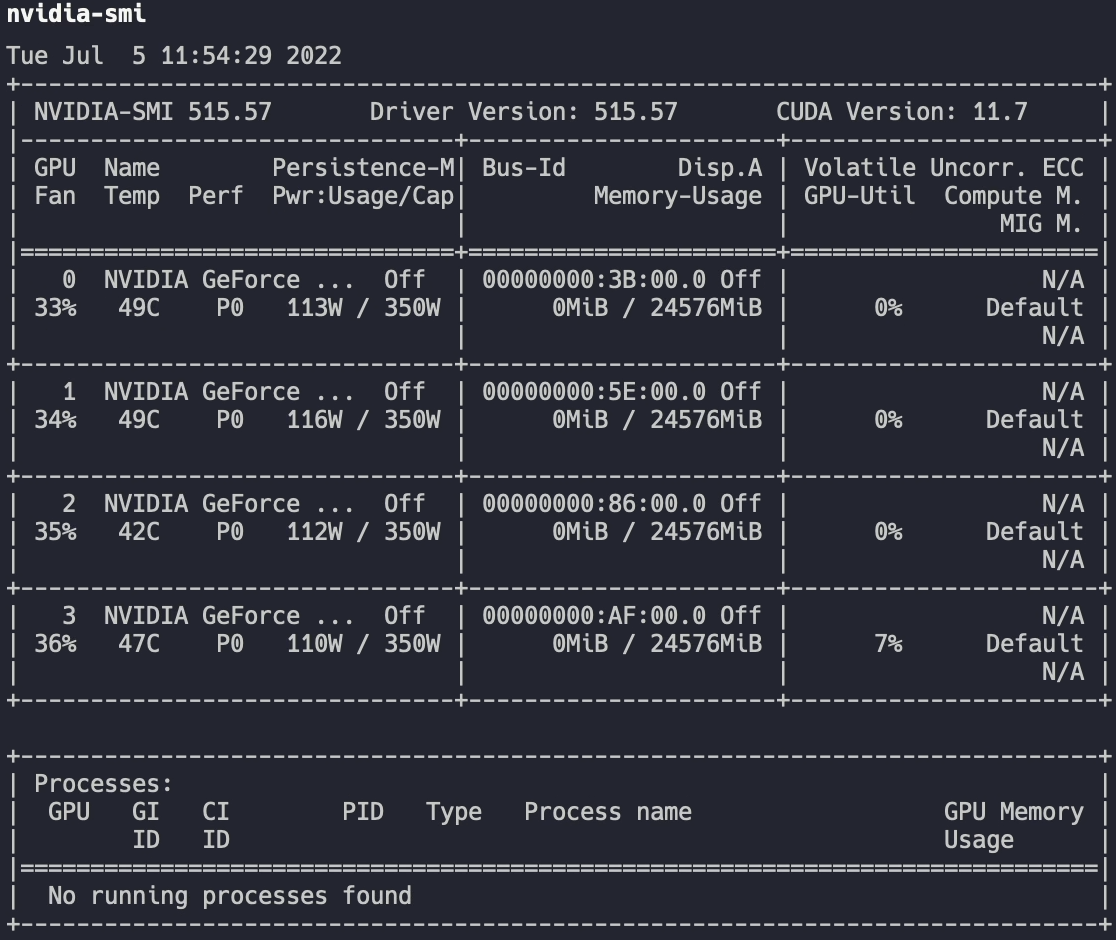 完整步骤!如何使用LXD构建多人使用GPU服务器 2022-07-14 | lxd, ubuntu | 知识点 文章目录 格式化硬盘换 apt 源固定内核版本配置宿主机网络安装 lxd、zfs 及 bridge-utils安装宿主机显卡驱动LXD 初始化创建容器更改容器名为容器添加设备和权限制作容器模板更换容器的 apt 源配置容器网络更改容器用户名和密码配置容器 ssh 连接添加初始化容器脚本安装容器的显卡驱动创建容器快照创建容器脚本解决重启宿主机导致容器显卡驱动找不到的问题安装 Anaconda安装 PyTorch设置开机自启动命令 最近深度学习仍然爆火,多人如何优雅地使用 GPU 服务器仍然是值得探讨的问题。 对于单个服务器来说,LXD 仍然是我认为最舒服的多人共用服务器的方式。他避免了权限滥用,能够完整利用硬件,缺点就是显卡驱动需要保持一致,升级较为麻烦。 本教程超级详细,是根据我最近操作录屏总结的最佳步骤,并且为批量操作总结了脚本,保证你能够顺利完成安装。 格式化硬盘 由于 LXD 的容器需要使用 ZFS 文件系统进行管理,因此有两种对硬盘的格式化方式: 所有硬盘作为宿主机系统盘。在 LXD 初始化时创建新的 ZFS 镜像,其占用宿主机硬盘空间; 除了一块硬盘作为宿主机系统盘外,其余硬盘格式化为 ZFS 文件系统,并可以通过 ZFS 构成 raid 阵列。在 LXD 初始化时直接选择已经创建的 ZFS 分区。 第1种方案由于 ZFS 的空间和宿主机共享,可能导致创建的 ZFS Pool 过大导致宿主机硬盘空间过小,届时可能无法通过ssh连接,需要在宿主机手动删除一些文件才可继续使用。 严重警告!!!ZFS 只支持扩容,不支持缩容,否则将带来不可逆的文件丢失。 因此这里推荐使用第2种方式,因为这样宿主机与容器的存储分离开来,存储逻辑更清晰。 宿主机系统推荐使用 Ubuntu Server,即不带桌面的版本,这样作为服务器更稳定。 宿主机安装时硬盘选择了 LVM 分区格式,但是他只分配了 200 GB,其他空间没有利用。因此需要使用以下命令将 LVM 分区扩容,占用整个硬盘空间: sudo fdisk -lsudo pvdisplaysudo vgdisplaysudo lvdisplaysudo lvextend -r -l +100%Free /dev/ubuntu-vg/ubuntu-lvdf -hl 使用下面的命令对 硬盘 /dev/sda 进行 ZFS 的分区格式,如果组 raid 可以上网查。 sudo apt install zfsutils-linux# 创建 ZFS 普通分区sudo zpool create zfs_lvm sda# 创建 ZFS mirror(raid1)分区sudo zpool create zfs_lvm mirror sda sdb# 创建 ZFS raidz(raid5)分区:sudo zpool create zfs_lvm raidz sdb sdc sdd sde 其中 zfs_lvm 为 ZFS Pool 的名字。 换 apt 源 sudo mv /etc/apt/sources.list /etc/apt/sources.list.baksudo vim /etc/apt/sources.list 如下为哈工大源: # 默认注释了源码镜像以提高 apt update 速度,如有需要可自行取消注释deb http://mirrors.hit.edu.cn/ubuntu/ focal main restricted universe multiverse# deb-src http://mirrors.hit.edu.cn/ubuntu/ focal main restricted universe multiversedeb http://mirrors.hit.edu.cn/ubuntu/ focal-updates main restricted universe multiverse# deb-src http://mirrors.hit.edu.cn/ubuntu/ focal-updates main restricted universe multiversedeb http://mirrors.hit.edu.cn/ubuntu/ focal-backports main restricted universe multiverse# deb-src http://mirrors.hit.edu.cn/ubuntu/ focal-backports main restricted universe multiversedeb http://mirrors.hit.edu.cn/ubuntu/ focal-security main restricted universe multiverse# deb-src http://mirrors.hit.edu.cn/ubuntu/ focal-security main restricted universe multiverse# 预发布软件源,不建议启用# deb http://mirrors.hit.edu.cn/ubuntu/ focal-proposed main restricted universe multiverse# deb-src http://mirrors.hit.edu.cn/ubuntu/ focal-proposed main restricted universe multiverse 更新源: sudo apt updatesudo apt upgrade 固定内核版本 sudo apt-mark hold linux-image-generic linux-headers-generic 防止内核升级导致显卡驱动失效。 因为显卡驱动需要编译内核版本,升级内核后显卡驱动需要重新编译安装。由于 LXD 容器共享内核,升级内核会导致所有显卡驱动都需要重新安装。 配置宿主机网络 需要更改宿主机网络为网桥模式,这样才能使容器和宿主机处于同一网络子层,在同一局域网的计算机可以直接 ssh 链接。 Ubuntu 17.10 以后默认使用 Netplan 管理网络。 进入 /etc/netplan/ 目录有一个 yaml 配置文件,下面的命令需要根据自己的 yaml 文件名称自行修改 sudo cp /etc/netplan/01-netcfg.yaml /etc/netplan/01-netcfg.yaml.baksudo vim /etc/netplan/01-netcfg.yaml 如下: # This file describes the network interfaces available on your system# For more information, see netplan(5).network: version: 2 renderer: networkd ethernets: eno1: dhcp4: no dhcp6: no bridges: br0: dhcp4: no dhcp6: no interfaces: - eno1 addresses: [ 192.168.100.123/24 ] gateway4: 192.168.100.254 nameservers: addresses: - 114.114.114.114 - 8.8.8.8 parameters: stp: false forward-delay: 0 addresses: [ 192.168.100.123/24 ] 为任意网络无人占用的 IP 即可。 gateway4: 192.168.100.254 为网关地址。 eno1 为网卡名称,可以使用 ip a 或 ifconfig 命令查看。 应用网络配置: sudo netplan --debug apply 安装 lxd、zfs 及 bridge-utils sudo snap install lxdsudo apt install zfsutils-linux bridge-utils 我们需要安装 LXD 实现虚拟容器,ZFS 作为 LXD 的存储管理工具,bridge-utils 用于搭建网桥。由于 apt 安装的 LXD 不是最新版本,这里使用 snap 安装工具安装 LXD。 安装宿主机显卡驱动 去 NVIDIA 官网 下载最新驱动,这里下载的是 ./NVIDIA-Linux-x86_64-418.56.run。 由于系统是 ubuntu-server,所以简单很多,如果是安装的 ubuntu-desktop,建议用其他电脑 ssh 远程连接后再安装。如果一定要在有 desktop 的系统安装显卡驱动,可以参考:超详细! Ubuntu 18.04 安装 NVIDIA 显卡